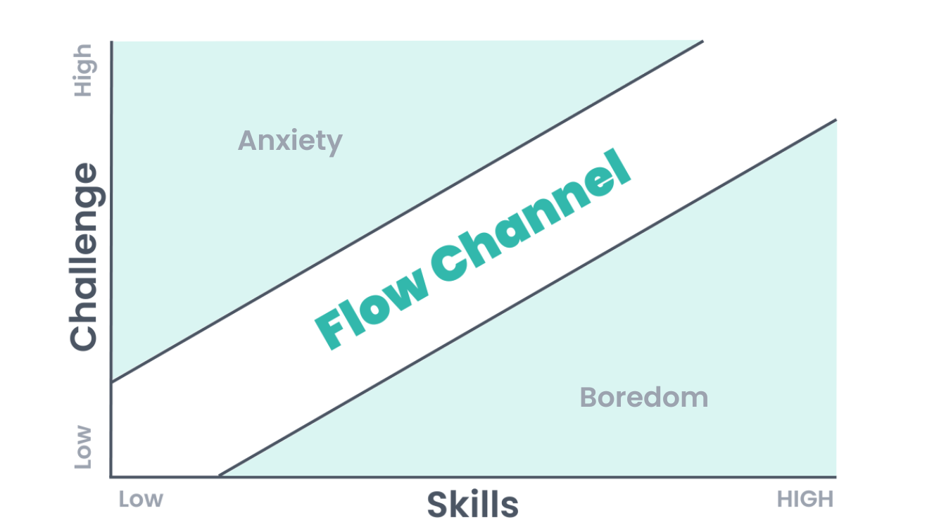 We need to find the perfect harmony between challenge and skill level–a place called the "Flow Channel" which resides between anxiety and boredom.